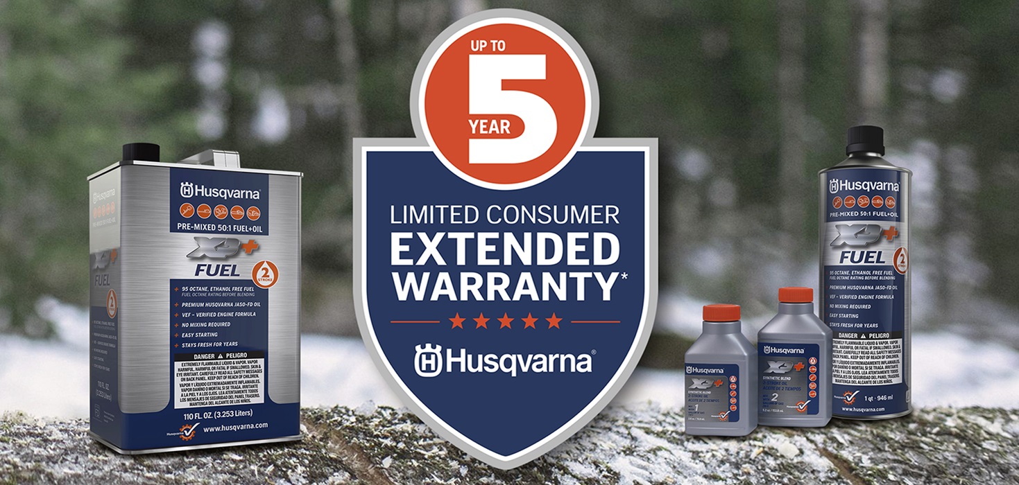 Effective November 1, 2019, consumers who purchase 2-stroke gasoline powered Husqvarna branded handheld products, including: chainsaws, blowers, hedge trimmers, pole saws and trimmers, for non-income producing personal use or household purposes, excluding commercial, agricultural, retail, industrial and rental usage types, can extend their product warranty from the standard 2 years to either a 3 year or 5 year limited consumer warranty.